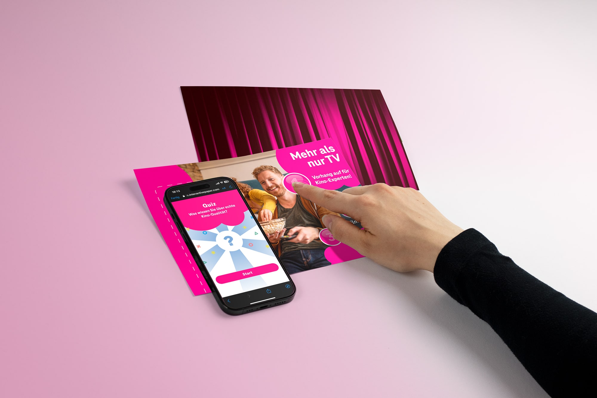 An interactive quiz playfully showcases the benefits of the potential TV subscription, establishing an entertaining connection with customers’ knowledge.