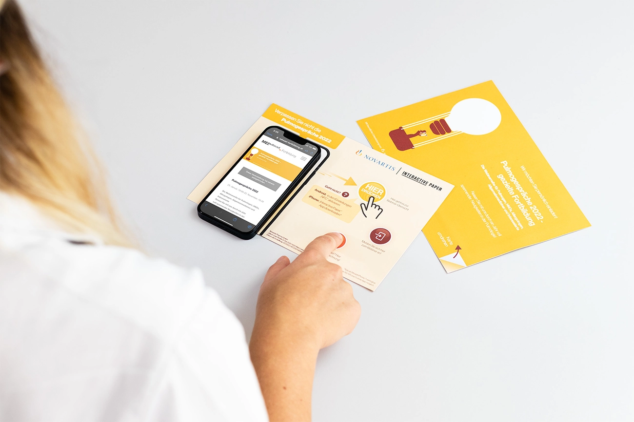 There was no need to switch from the Interactive Paper to a laptop and scroll through the whole website again - just one click on the second button, and doctors could register for the webinars of their interest directly on their phones.